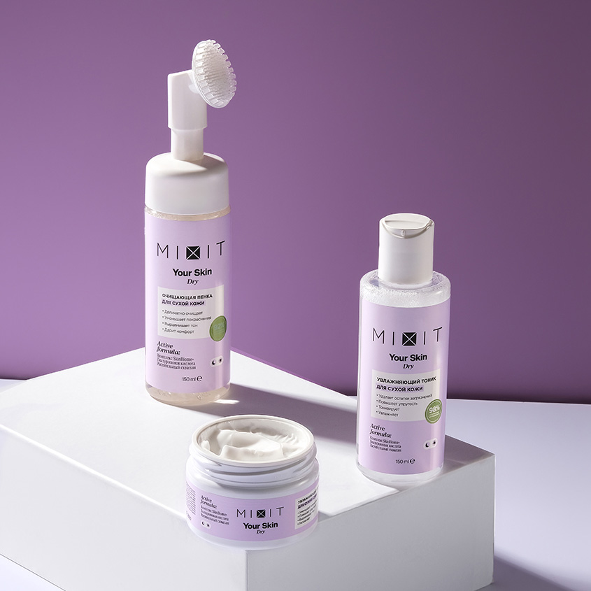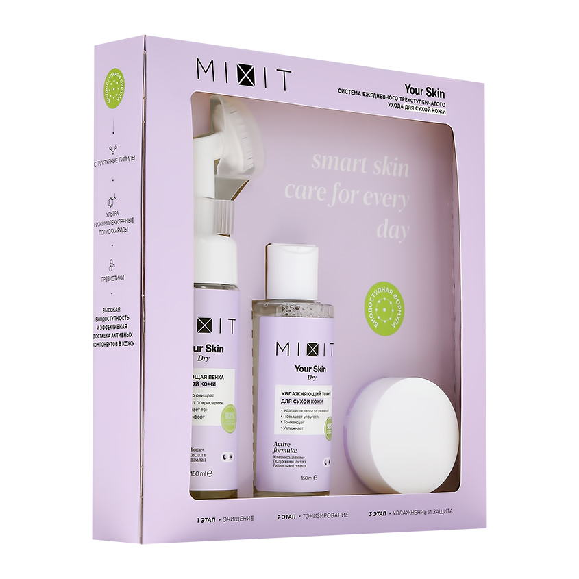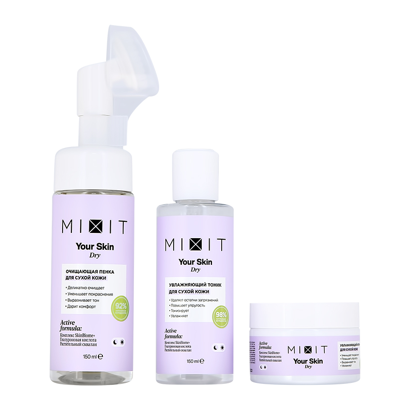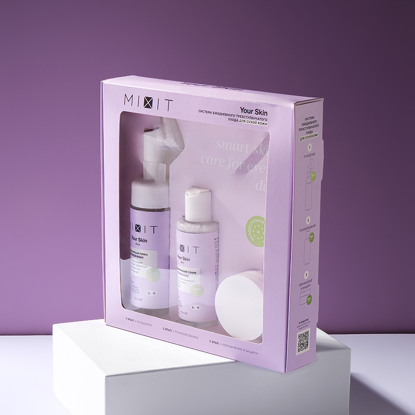 Набор подарочный женский `MIXIT` YOUR SKIN (пенка для лица 150 мл, тоник для лица 150 мл, крем для лица 50 мл)