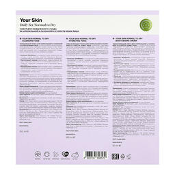 Трёхступенчатый уход YOUR SKIN Daily Set Normal to Dry предназначен для ежедневного ухода за нормальной и склонной к сухости кожи лица. Базовые продукты для очищения, тонизирования и увлажнения обеспечивают комплексный результат благодаря формулам, обогащённым растительным скваланом и гиалуроновой кислотой. Гипоаллергенная отдушка во всех составах подойдёт даже при повышенной чувствительности сухой кожи. Рекомендуем применять комплекс из трёх средств ежедневно утром и вечером.