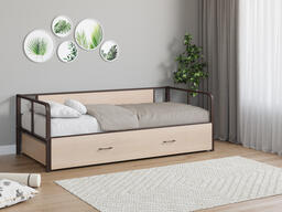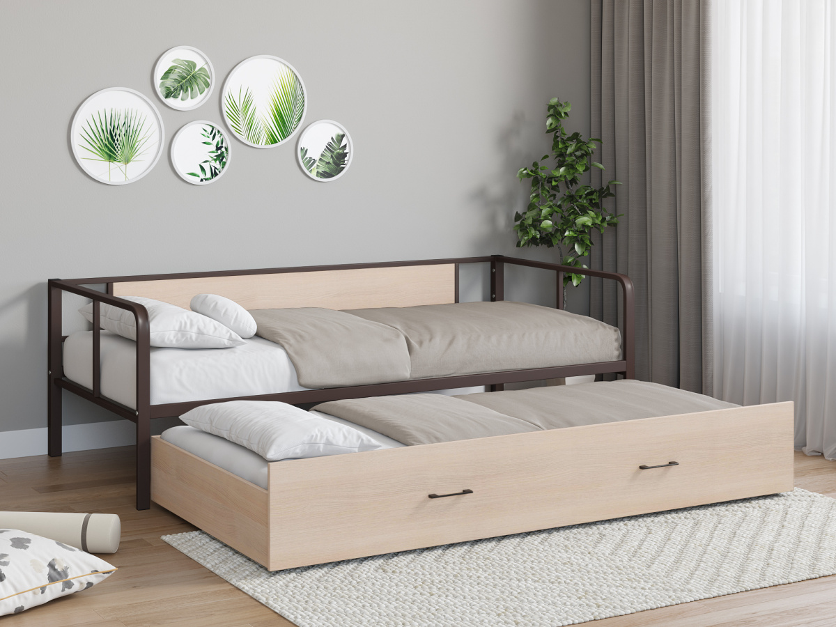 Кровать Арга Лофт 90 выкатная Коричневый/Дуб молочный