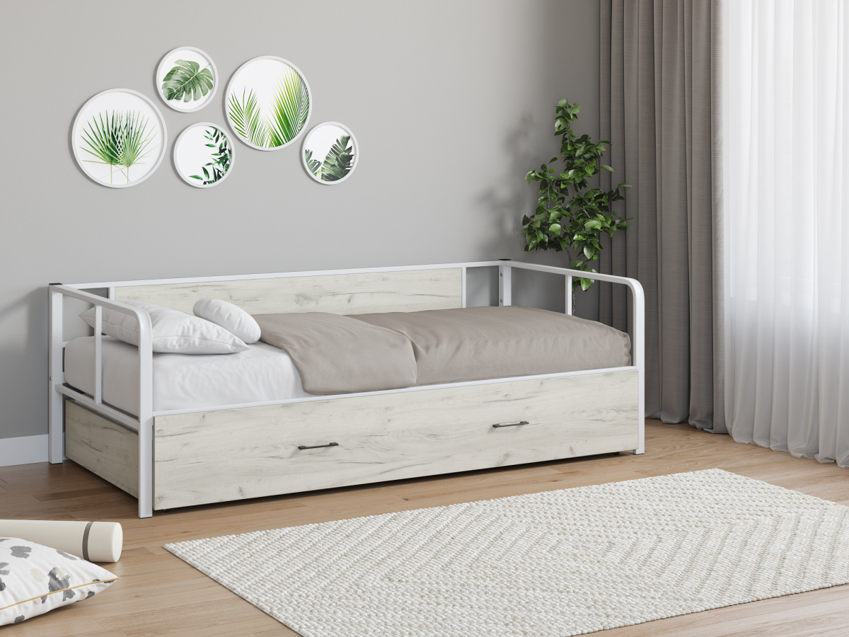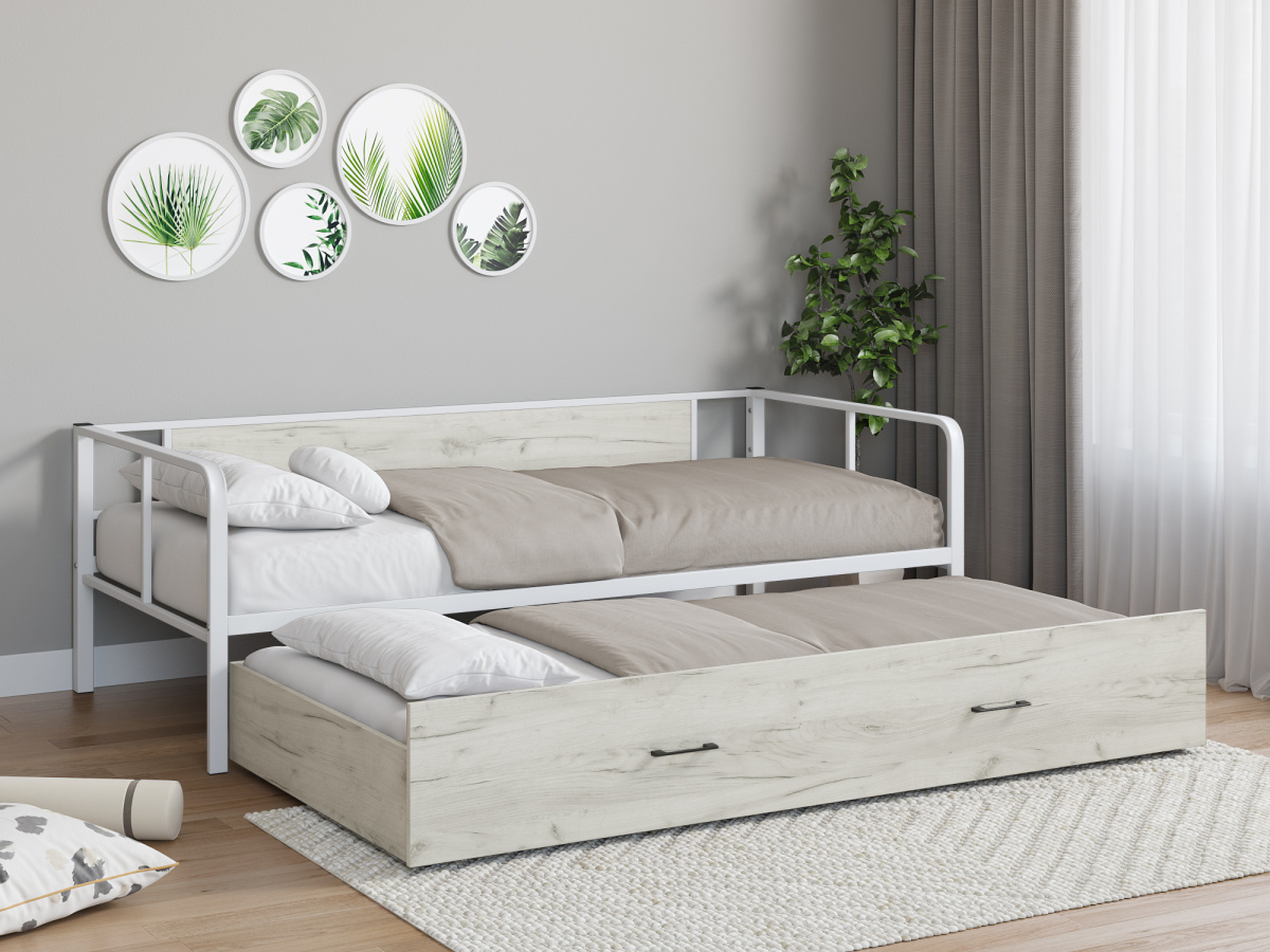 Кровать Арга Лофт 90 выкатная Белый/Дуб крафт белый
