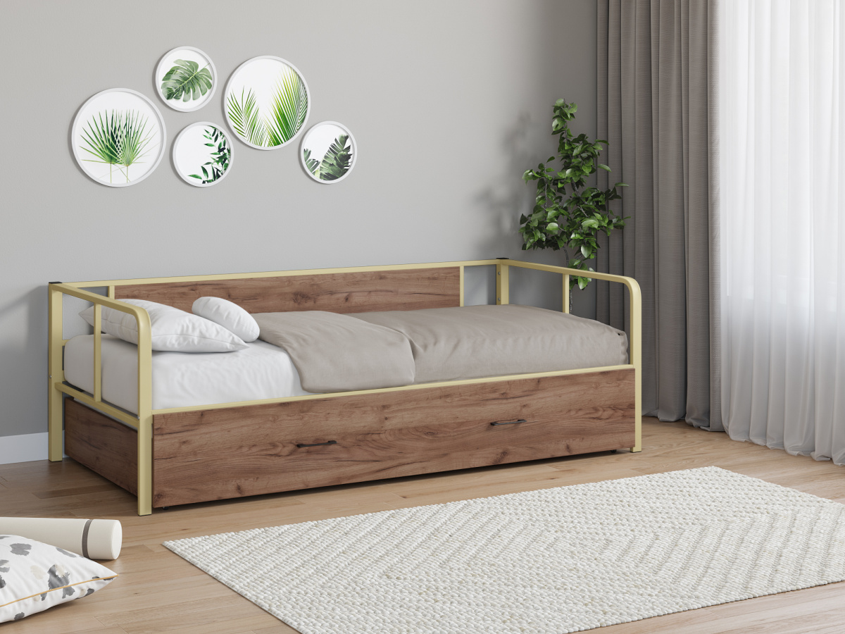 Кровать Арга Лофт 90 выкатная Слоновая кость/Дуб крафт табак