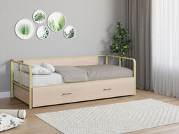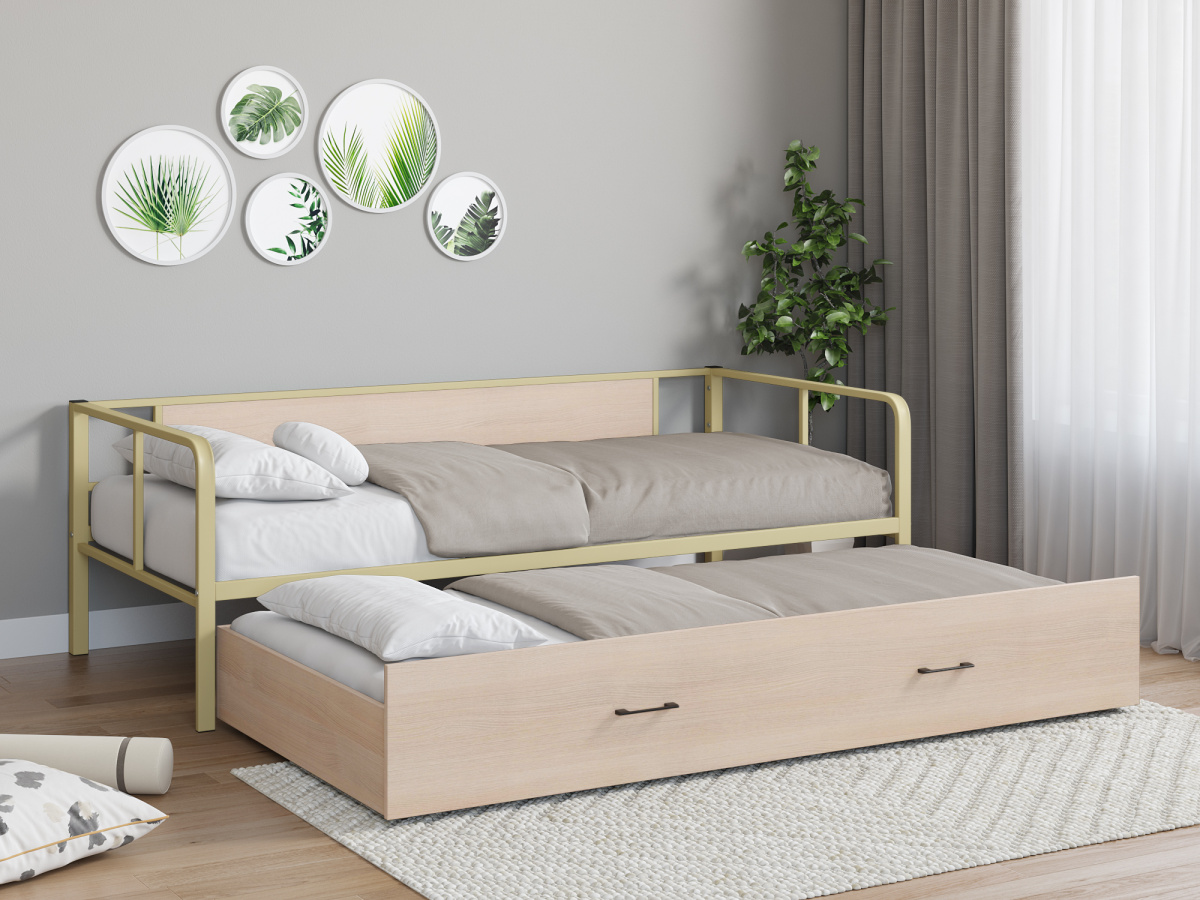 Кровать Арга Лофт 90 выкатная Слоновая кость/Дуб молочный