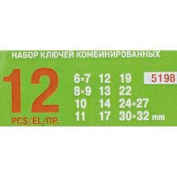 Isma-5198 Ключи комбинированные и рожковые, набор 12пр. (6х7, 8х9, 10, 11, 12, 13, 14, 17, 19, 22, 24х27, 30х32мм), в пластиковом держателе