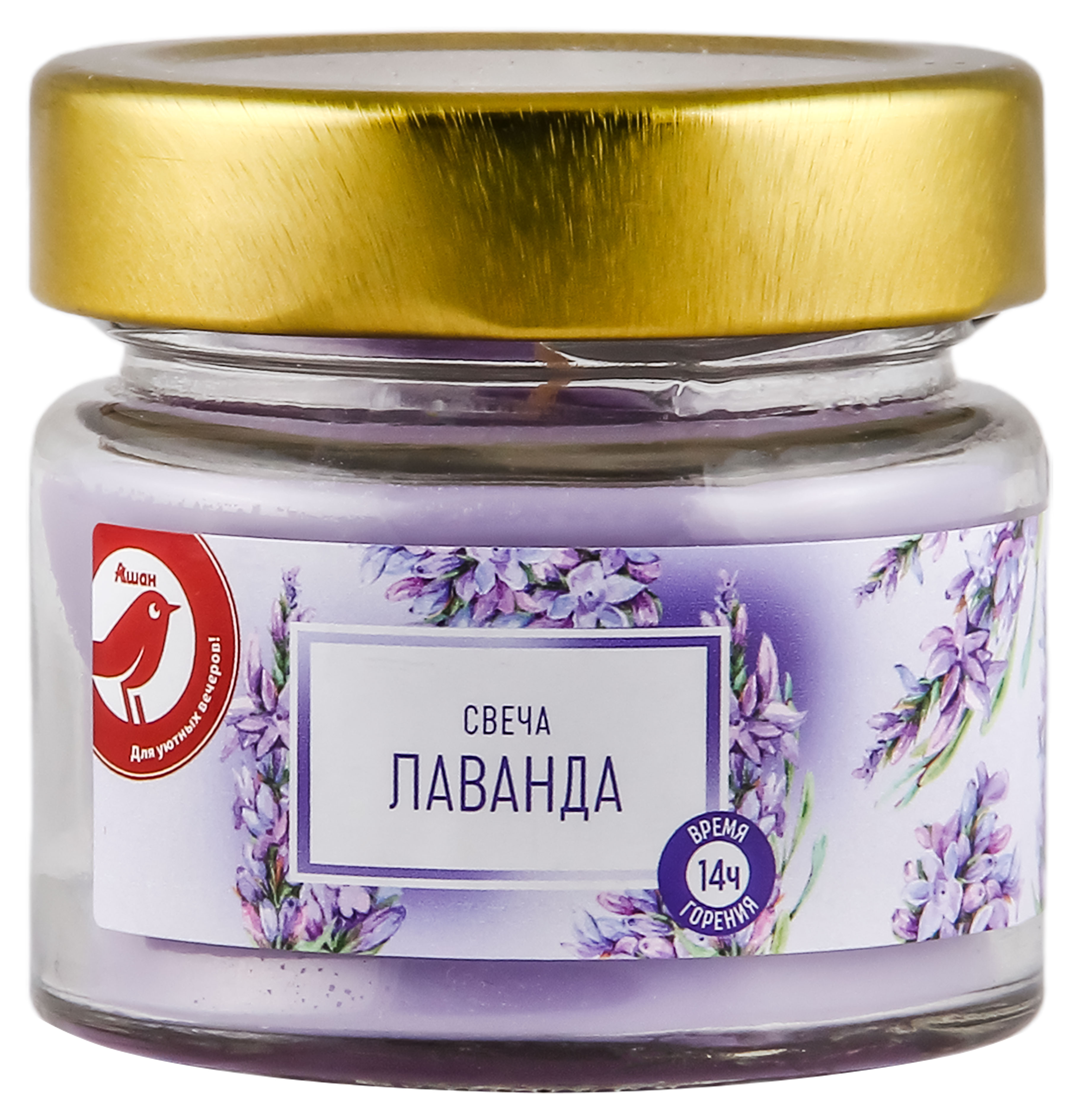 Свеча АШАН Красная птица с ароматом лаванды в банке, 14 ч