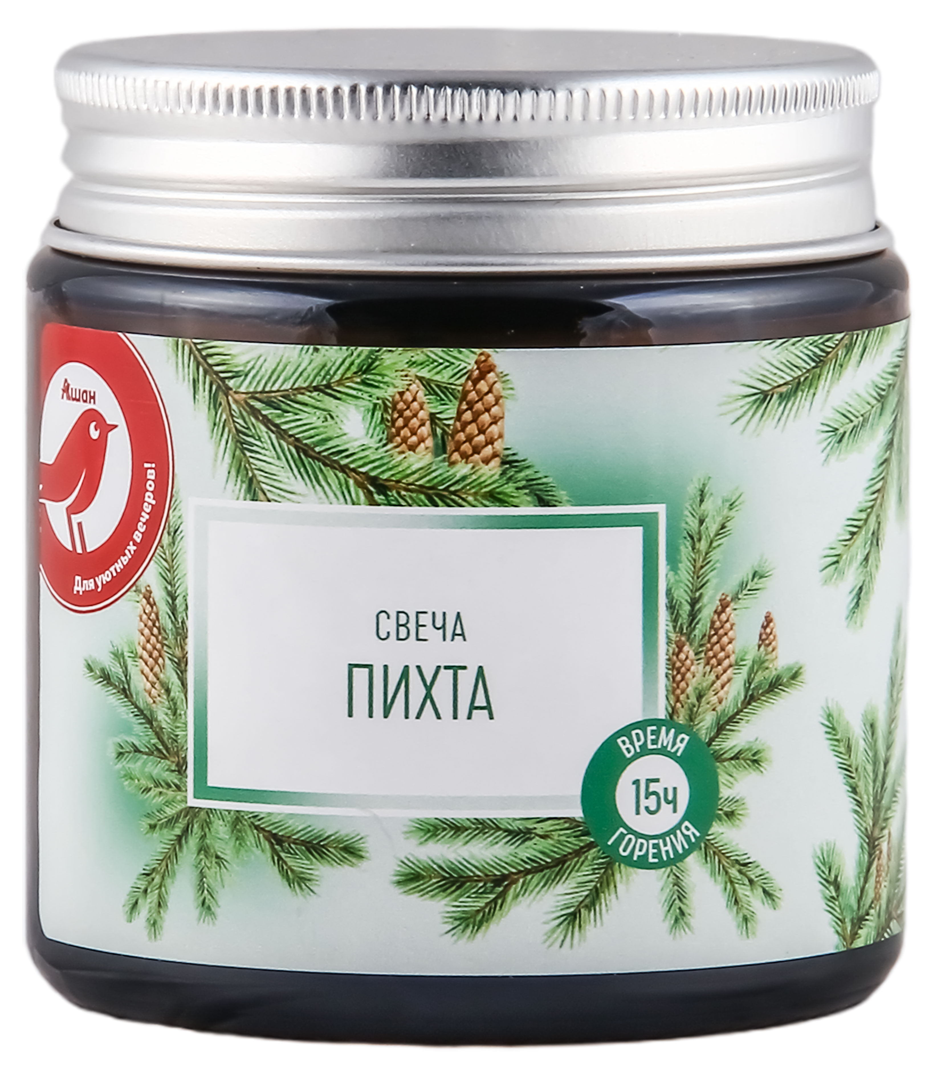 Свеча АШАН Красная птица с ароматом пихты в банке, 15 ч