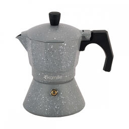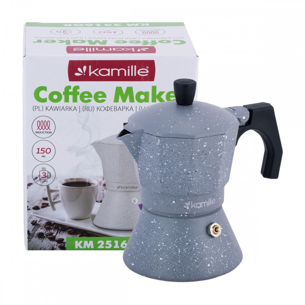 Нарушена упаковка! <309353> Кофеварка гейзерная 150мл (3 порции) из алюминия с широким индукционным дном (серый мрамор) Kamille 2516GR