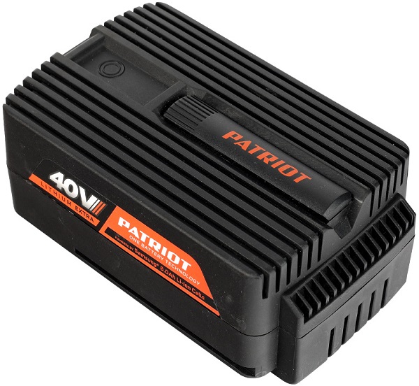Li-Ion аккумулятор с элементами от "Samsung". Устанавливается на аккумуляторный садовый инструмент Patriot с рабочим напряжением 40 Вольт. На аккумуляторе установлен светодиодный индикатор степени заряда.