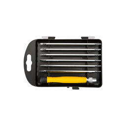 Викрутки прецизійні, набір 7 шт., викрутки рукоятка, 6 переставних двосторонніх стрижнів, розміри: 1.5 мм x T5, 2 мм x T6, 3 мм x T7, PH000 x T8, PH00 x T9, PH0 x T10, сталь CrV.