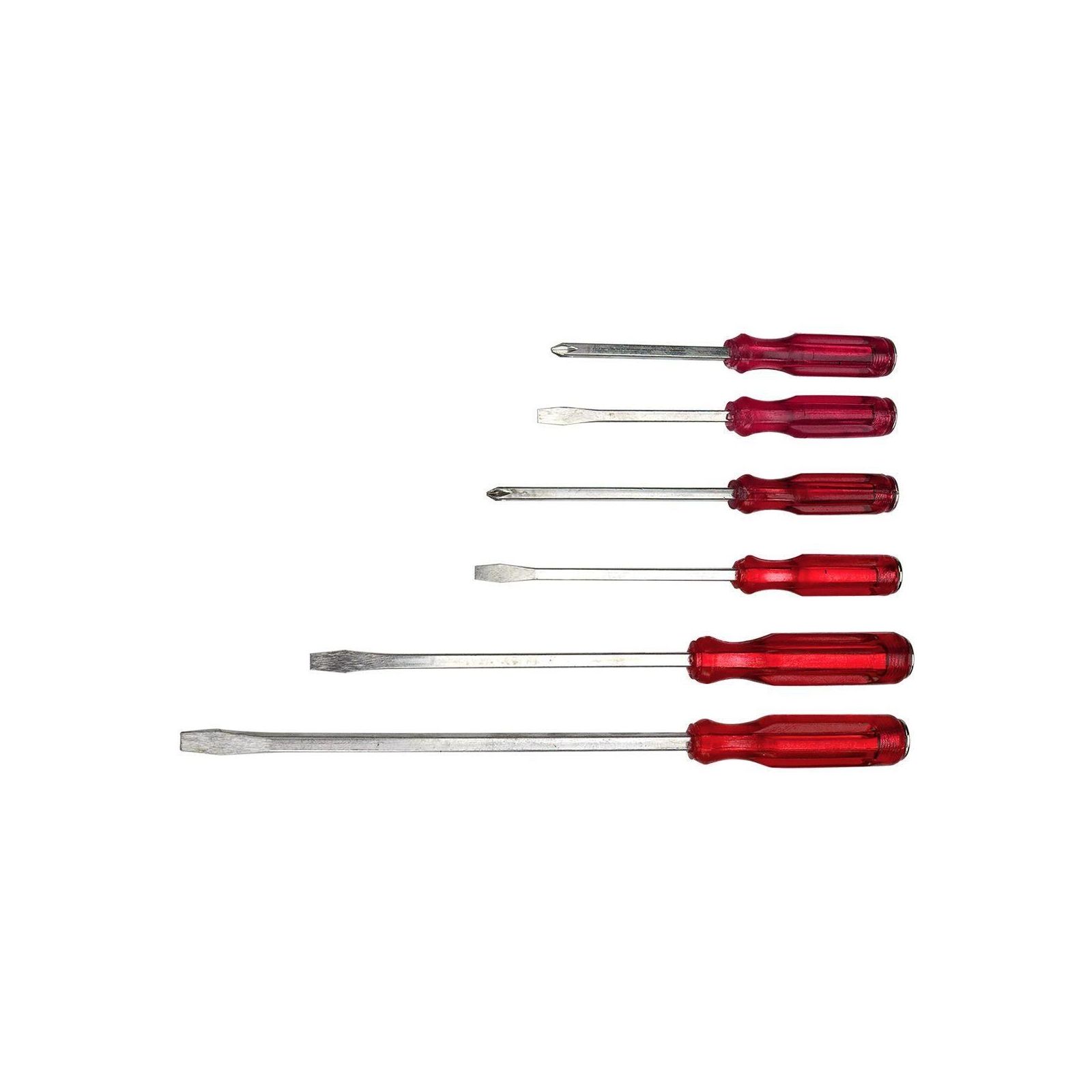 Викрутки для підбиття, набір 6 шт., загартована вуглецева сталь, розміри: шліцеві 5 x 75 мм, 5 x 100 мм, 6 x 150 мм, 6 x 200 мм, PH2 x 75 мм, PH2 x 100 мм.