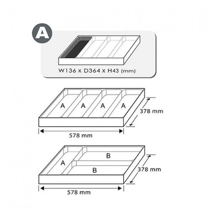 Всі набори інструментів TOPTUL високої якості в даний час розроблені з 2 взаємозамінними розмірами вкладишів (A і B), що дозволяє користувачам легко комбінувати і поєднувати найбільш підходящий і необхідний інструмент у кожному ящику.