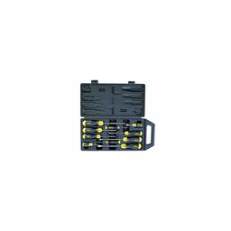 Він включає в себе інструменти з прямими шліцами і шліцами серії Phillips, і всі вони поміщені в зручний і практичний пластиковий кейс.