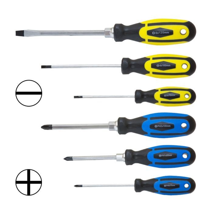 • Розміри викруток PH1 x 80 мм , SL4 х 100 мм , PH0 x 75 мм , SL3 х 75 мм , PH2 x 100 мм , SL6 х 125 мм