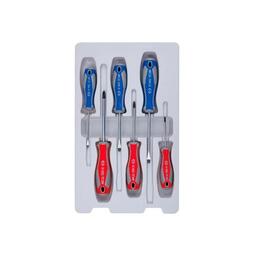 Набір викруток в коробці, 6 предметів - слюсарний ручний інструмент для відкручування або монтажу елементів різьбових з'єднань. Набір затребуваний в автосервісі і на виробництві. У комплект входять 2 типу викруток - з хрестоподібним і прямим шліцом різних розмірів.