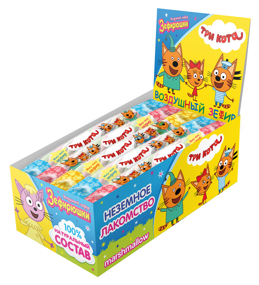 Все дети обожают есть сладости и получать их в подарок! Какими же они должны быть, чтобы радовать каждого ребенка? Такими, как сладкая косичка "Три кота", изготовленная на российской фабрике, оснащенной линией по производству классического воздушного зефира типа "маршмеллоу". В составе продукта только 100% натуральные ингредиенты, отсутствует яичный белок и глютен. Воздушный зефир - отличный, вкусный и легкий перекус даже для самых маленьких детей. Косичка "Три кота" трехцветная и сочетает в себе белый, нежно-розовый и светло-зеленый цвета. Вкус же у воздушного зефира один - ванильный, благодаря натуральной ванили. Удобный формат индивидуальной упаковки зефира позволяет взять его с собой, чтобы быстро перекусить на прогулке, перемене или в поездке.