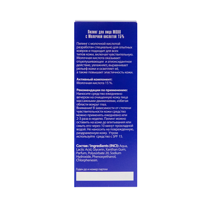 Пилинг с молочной кислотой разработан специально для beginner-пользователей и подходит для всех типов кожи, включая чувствительную. Молочная кислота оказывает отшелушивающее и антиоксидантное действие, увлажняет, выравнивает рельеф кожи и осветляет её, а также повышает эластичность кожи.