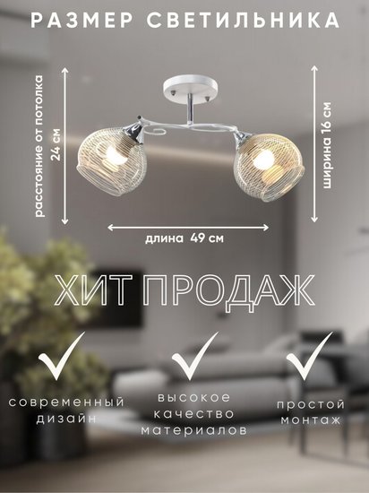 • Цвет плафонов, абажура белый, прозрачный, рисунок