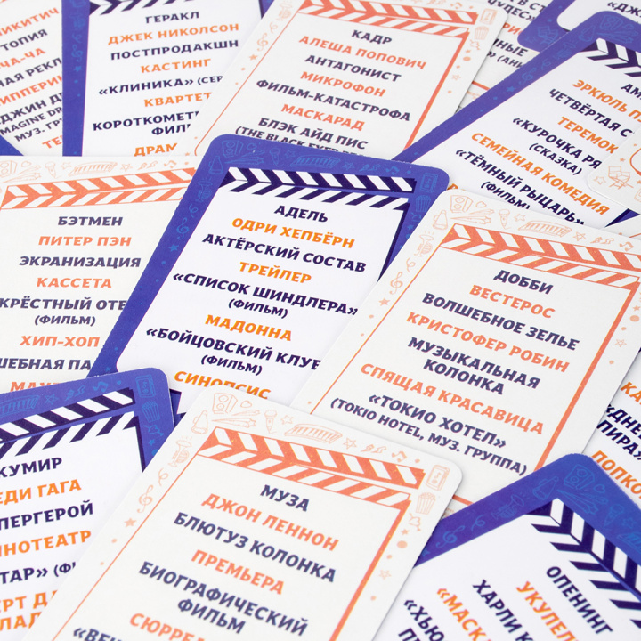 - в этой версии популярной настольной игры вам предстоит угадывать любимые фильмы и героев из них, известных музыкантов и музыкальные группы, а так же все , что связано с музыкальным миром и кинематографом;