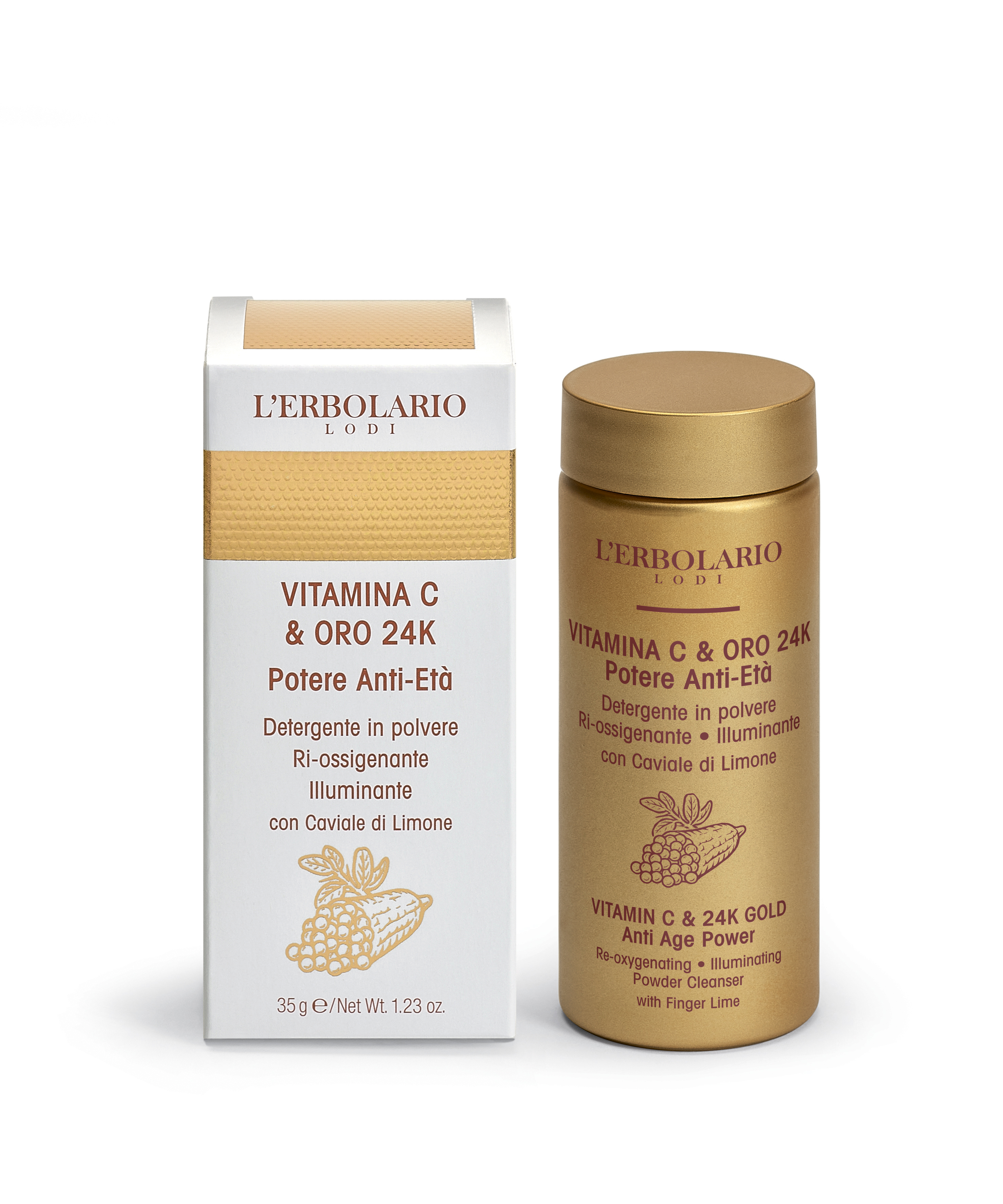 Антивозрастная очищающая пудра, наполняющая кожу кислородом с эффектом сияния Витамин С и 24-К Золото, 35 г