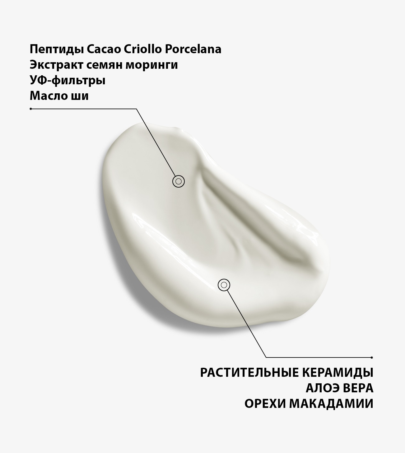 EISENBERG представляет глобальное омолаживающее средство c SPF30 PA+++ для защиты в течение всего дня с тройной защитой. Дневной крем предлагает защиту 360° от различных факторов, вызывающих преждевременное старение кожи, таких как УФ-лучи, синий свет и загрязнение. Cacao Criollo Porcelana выпускает пептиды, которые борются с окислительным стрессом и фотостарением, вызванным электронным экраном и воздействием ультрафиолета. Между тем, экстракт семян моринги обеспечивает вывод токсинов. Шелковистая эмульсия с растительными керамидами для укрепления гидролипидного барьера и алоэ вера для увлажнения и смягчения. Основанный на запатентованной формуле Trio-Molecular, этот уход является незаменимым для всех типов кожи, подвергающихся воздействию городских загрязняющих факторов. <br>