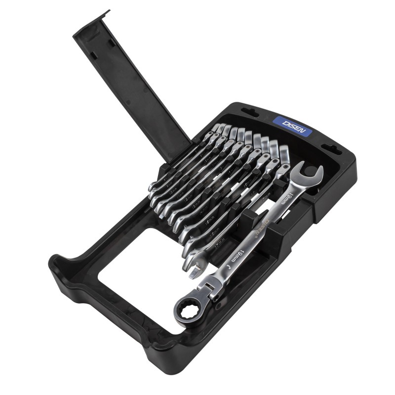 DSD1514F Набор ключей трещоточных с шарниром 11пр.(8,9,10,11,12,13,14,15,16,17,19мм),в пластиковом держателе