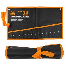 Органайзер для гаечных ключей – это хорошо продуманный аксессуар для хранения инструментов, который изготавливается для комфортного и долговечного пользования. Полотно (держатель) на 16 ключей гаечных. Чехол в развернутом виде имеет размеры 600 мм на 350 мм. Полотно-чехол для комбинированных, рожковых или накидных ключей имеет специальные отверстия с металлической оправой - они позволяют сэкономить место в гараже или мастерской, повесив набор гаечных ключей на стену или специальный стенд. Чехол-полотно для набора ключей гаечных имеет специальную фиксирующую ленту на застежке: набор комбинированных ключей можно скрутить и зафиксировать лентой.