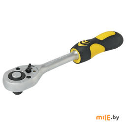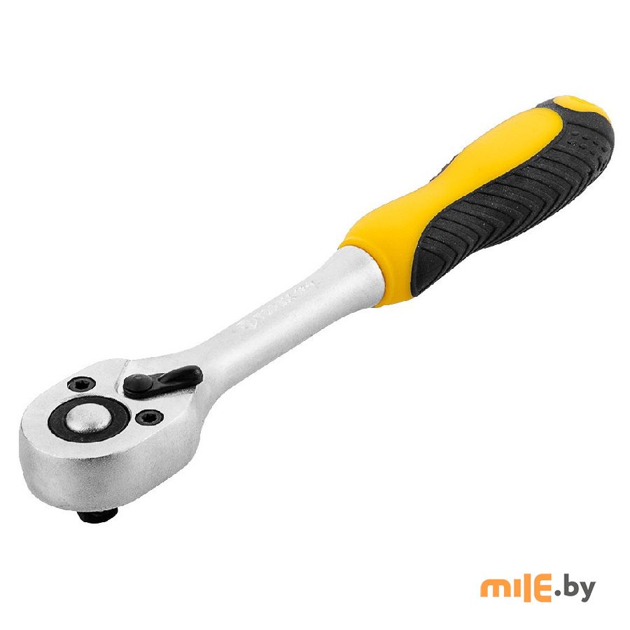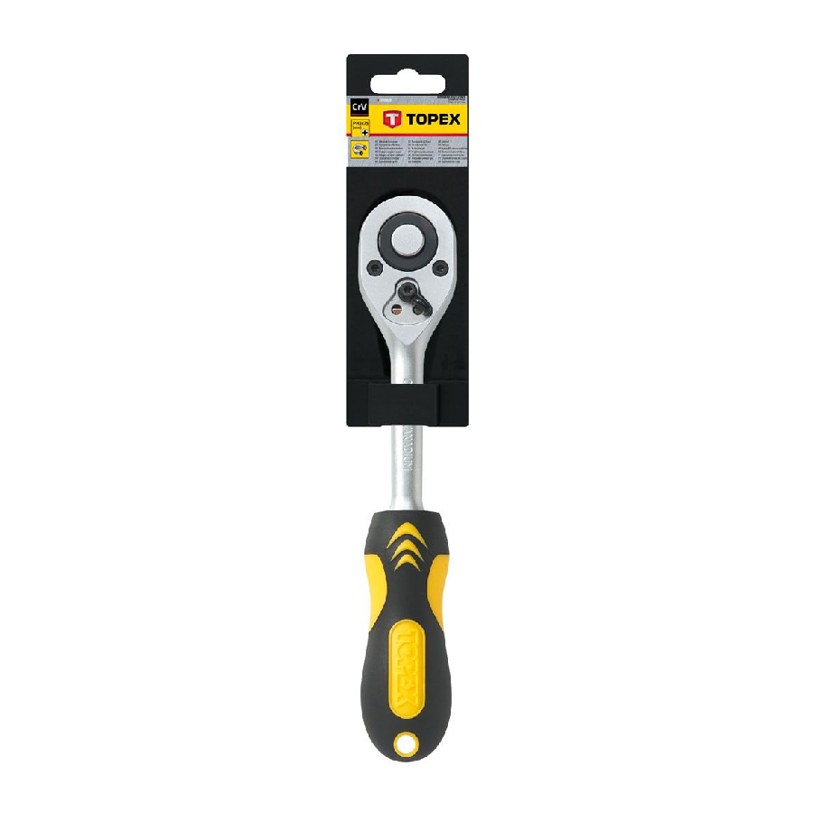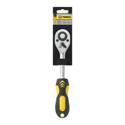 Трещоточный ключ 1/4 дюйма, 150 мм, 45 зубьев Topex используется при работе с головками и битами. Наличие флажкового переключателя допускает вращение инструмента в обе стороны. Рукоятка не скользит в руках.