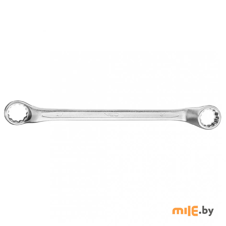 Накидной ключ изогнутой формы Neo Tools является одним из самых популярных гаечных ключей за счет простоты конструкции и функциональности. Изготовлен из хромованадиевой стали в соответствии с требованиями европейского стандарта DIN 838. Рабочая часть в форме кольца с рабочим 12-гранном профилем изогнута под углом 45°, что облегчает работу в труднодоступных местах. Длина ключа – 330 мм. Размер – 27х24 мм.