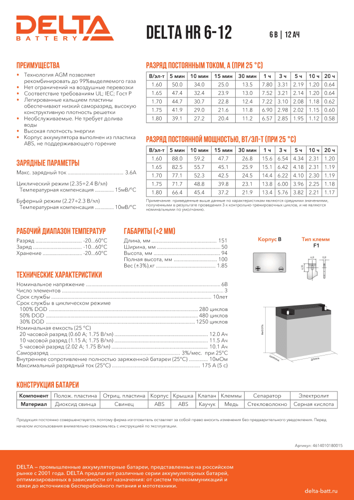 Аккумуляторная батарея DELTA BATTERY HR 6-12