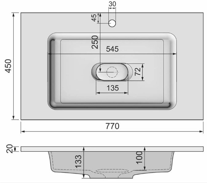 Размеры (ШхГхВ): 77x 45 х 13,3 см