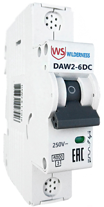Выключатель автоматический Wilderness DAW2-6DC 1P 2A х-ка C 6kA 250В DC (R) / DAW2-6DC-1-C002