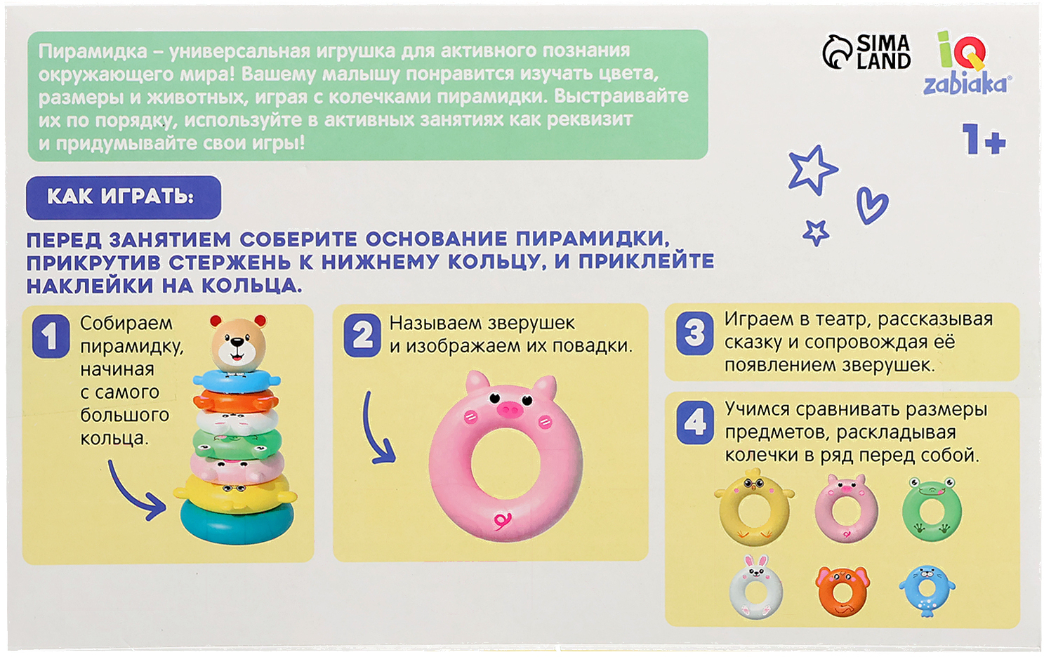 Развивающий игровой набор Zabiaka IQ Пирамидка. Зверята /10095412