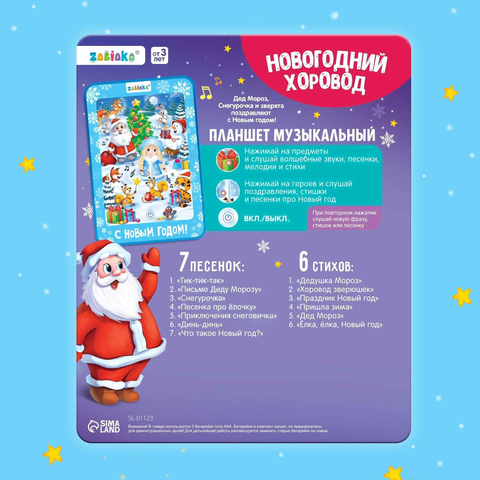 Развивающая игрушка Zabiaka Говорящий планшет. Новогодний хоровод 12027 / 3250469