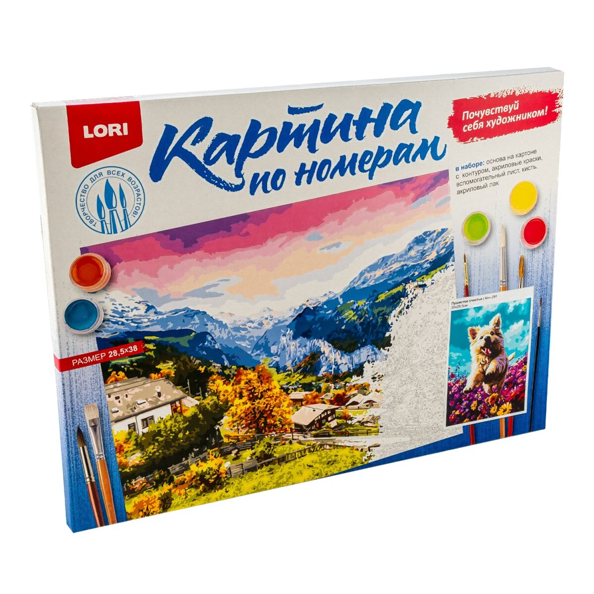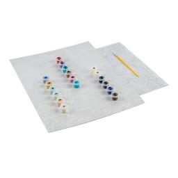 • Комплектация набора контрольный лист, холст, краски (акриловые), кисти (1 шт.), лак (акриловый)