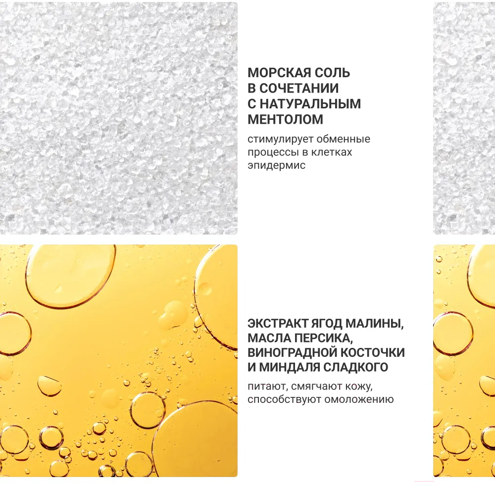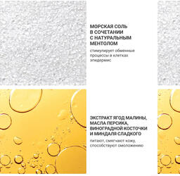 • Активные ингредиенты ментол, соль (морская), масло миндаля, масло персика, экстракт малины, масло винограда