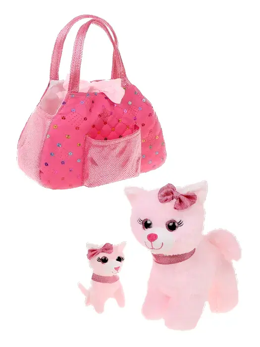 Набор мягких игрушек Fluffy Family В сумочке Мама и котенок / 682149