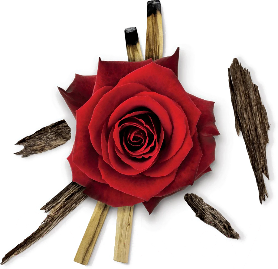 - Ноты роза (бархатная), ладан, уд