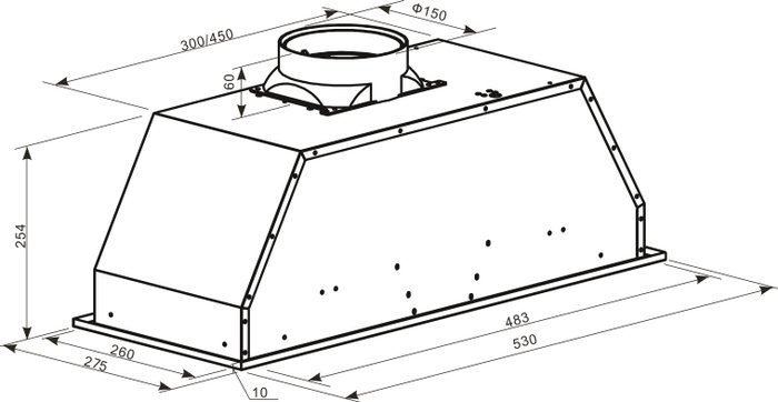 • Диаметр воздуховода 150 мм