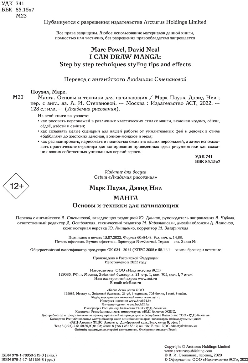 Книга АСТ Манга. Основы и техники для начинающих (Пауэл М., Нил Д.)