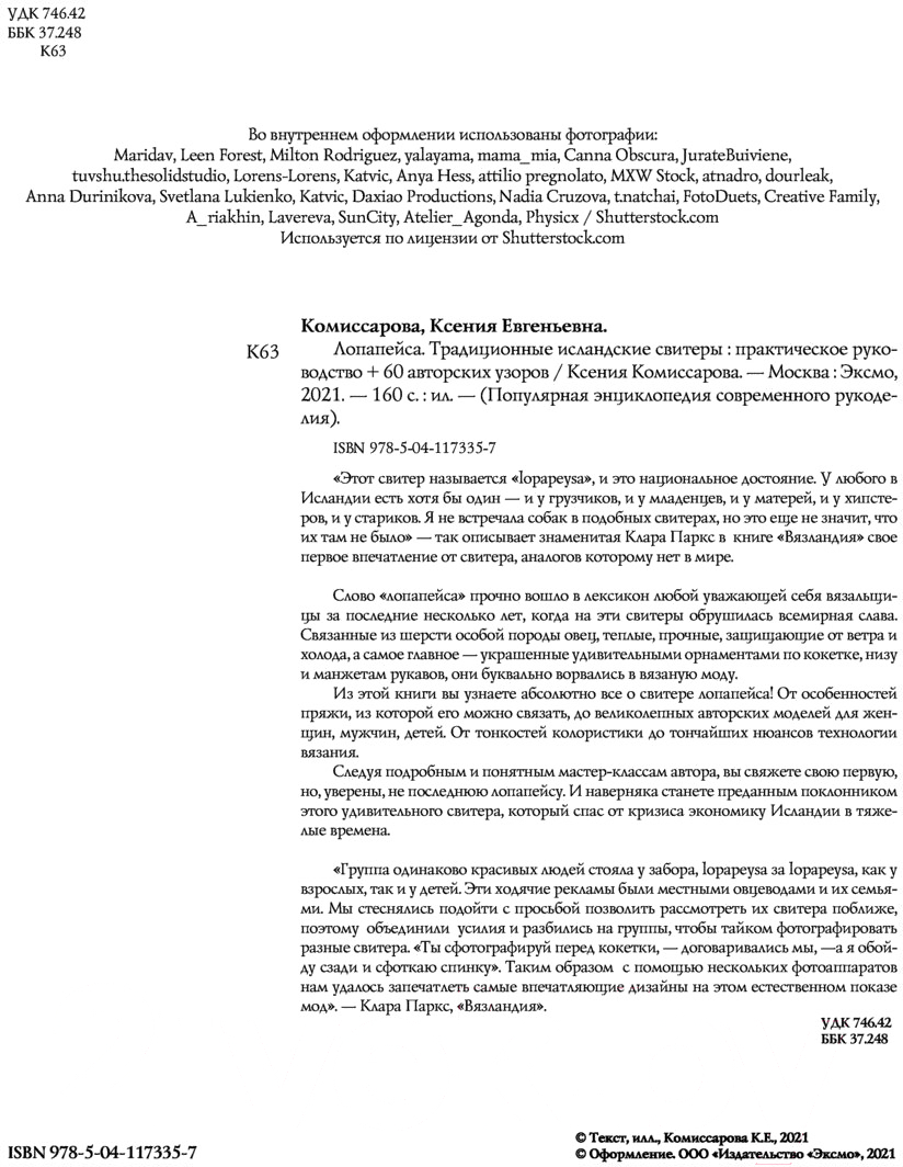 Книга Эксмо Лопапейса. Традиционные исландские свитеры (Комиссарова К.Е.)