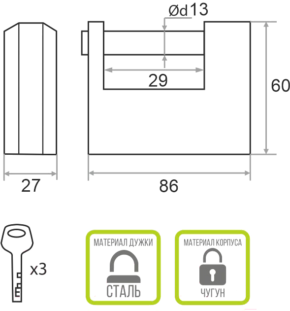 - Диаметр дужки 13 мм