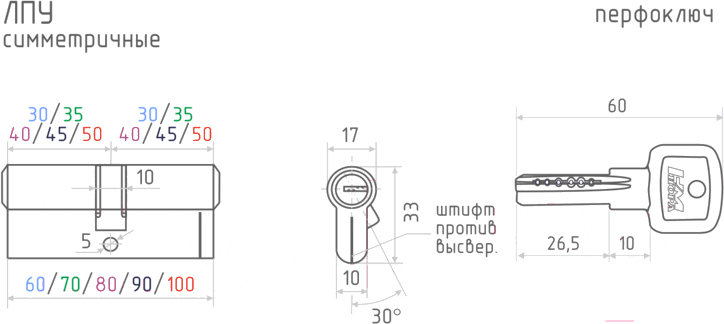 - Типоразмер цилиндра 30/30