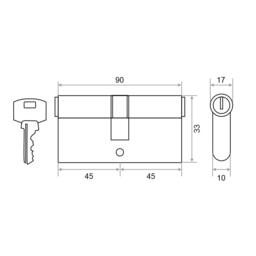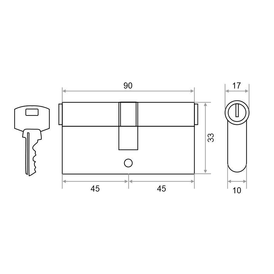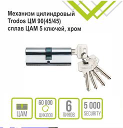 Цилиндровый механизм замка Trodos ЦМ 90 45/45 (сплав ЦАМ, хром)