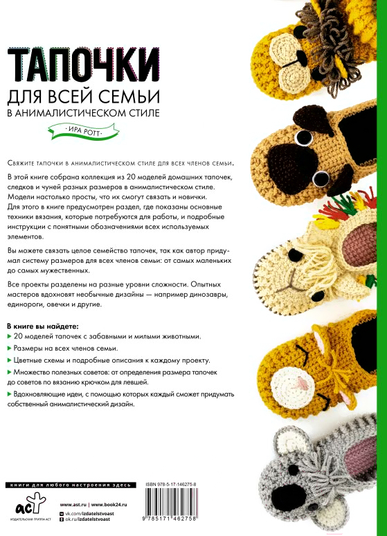 Книга АСТ Тапочки для всей семьи в анималистическом стиле (Ротт И.)