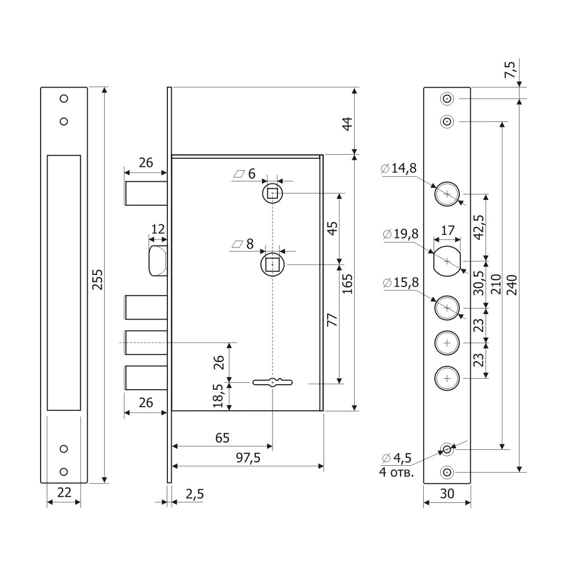 - Диаметр ригеля 15.8 мм (14.8 мм дополнительный)