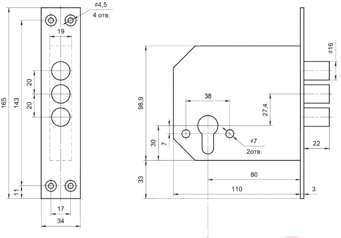 - Тип замок врезной