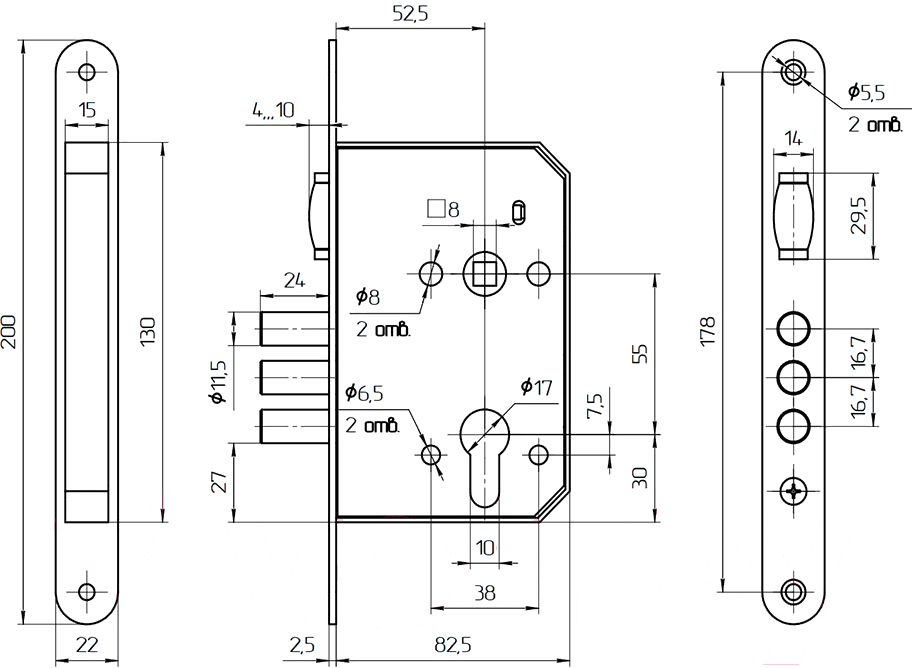 - Тип замок врезной