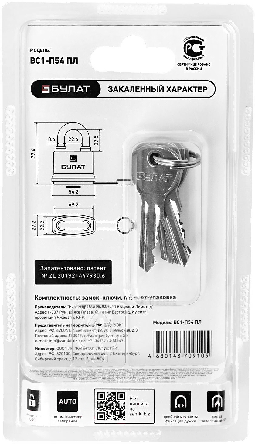 - Количество ключей 5 шт.