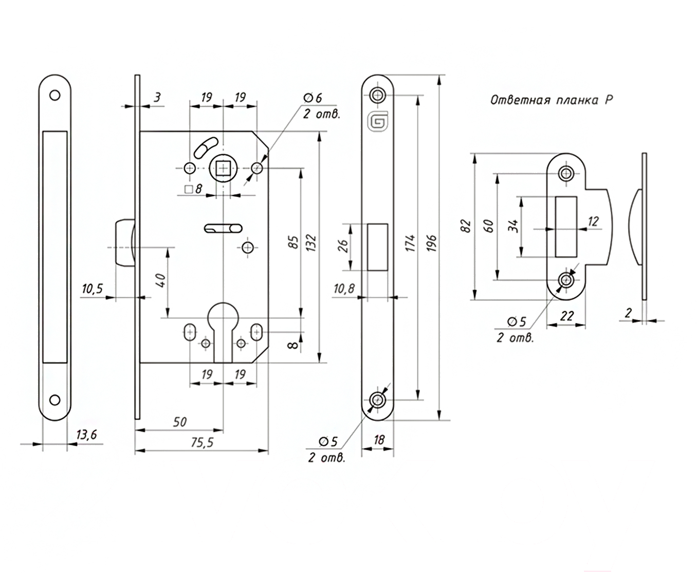 - Тип замок врезной