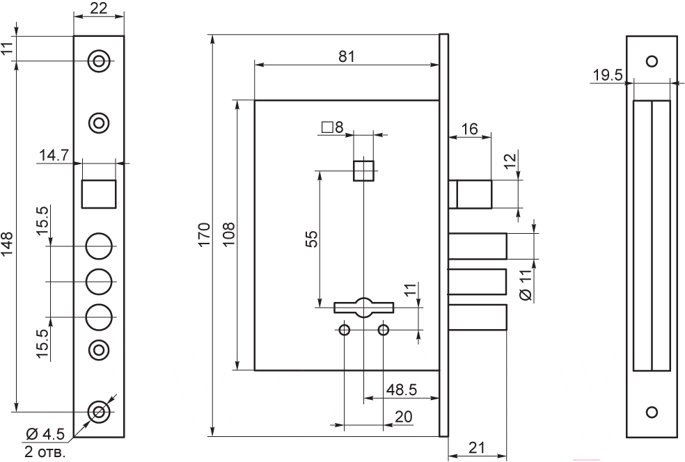 - Тип замок врезной