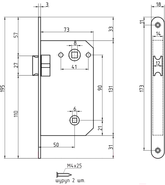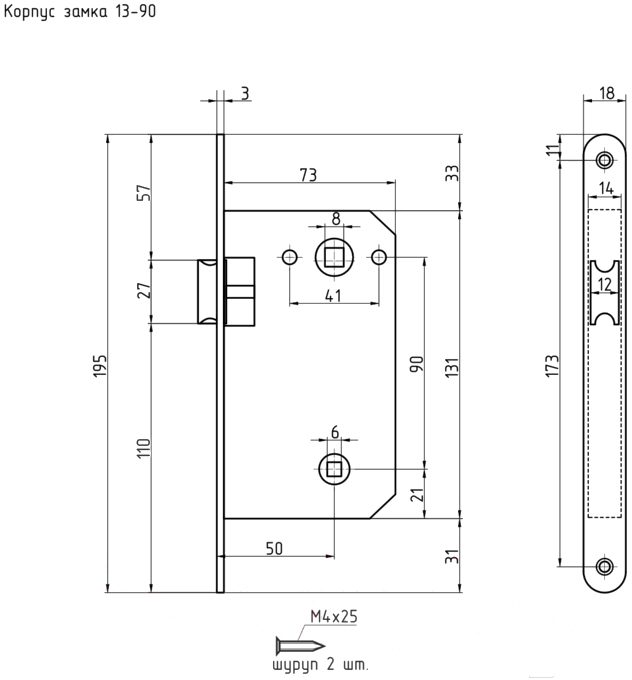 - Тип корпус врезного замка